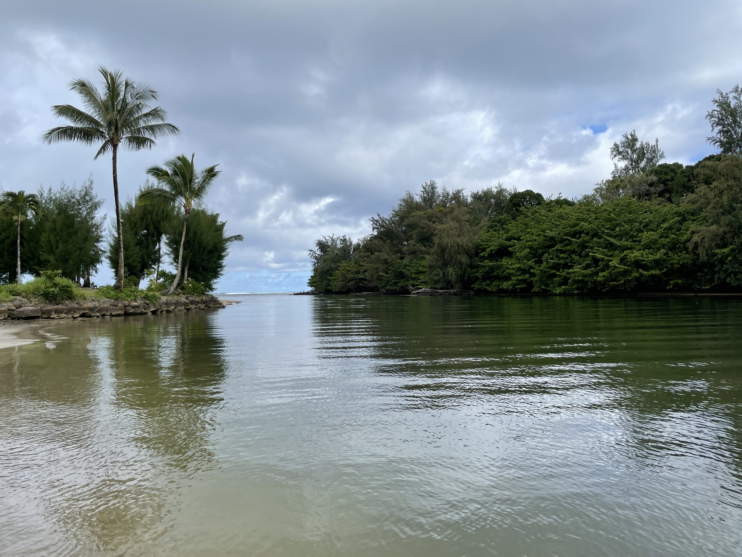 Keep going to the right from the man-made channel and you head towards the Hanalei Bay. Don’t worry – you won’t see any waves until the very very end. Do check for high surf, though. If the waves are up, go upstream.