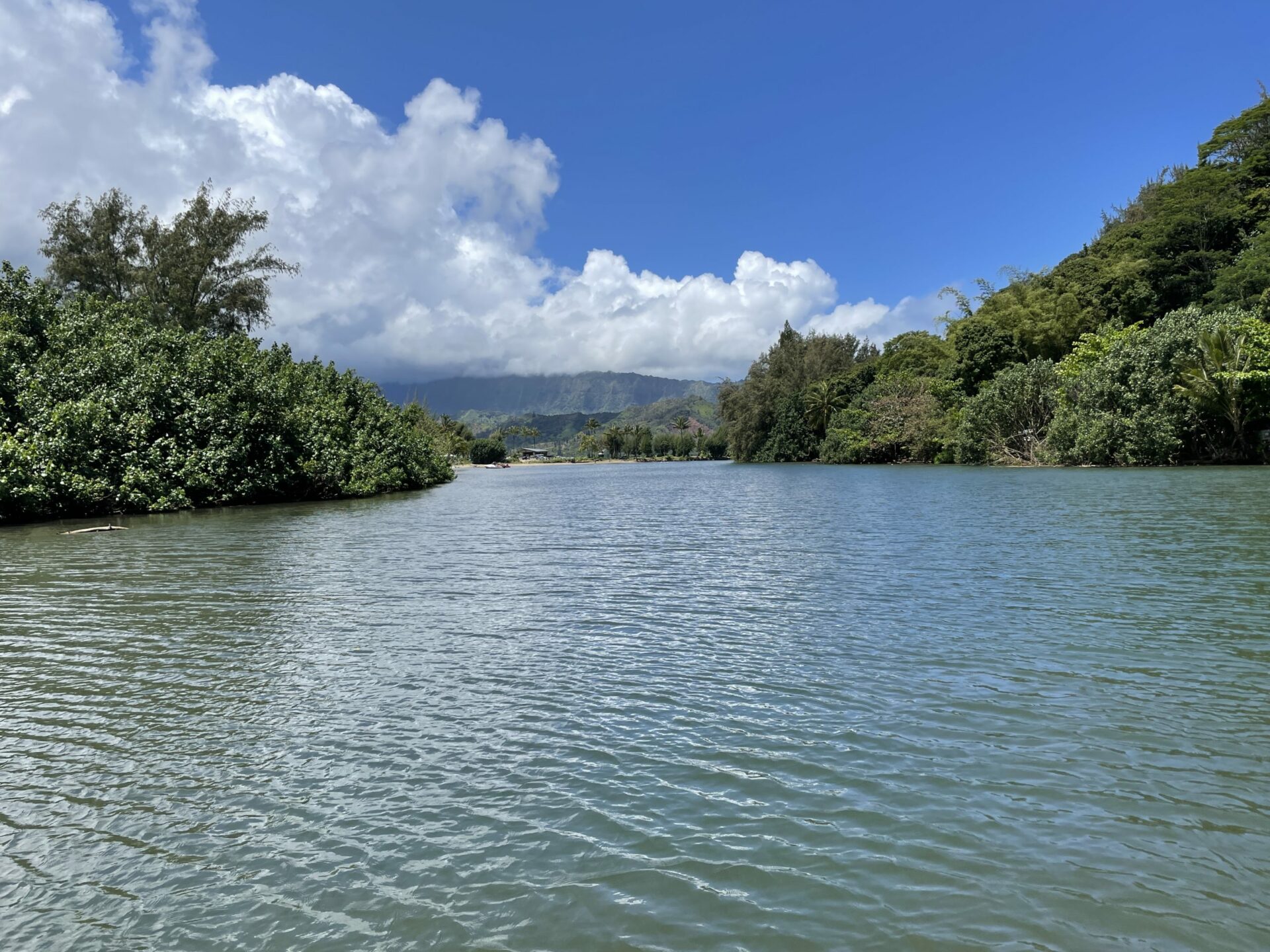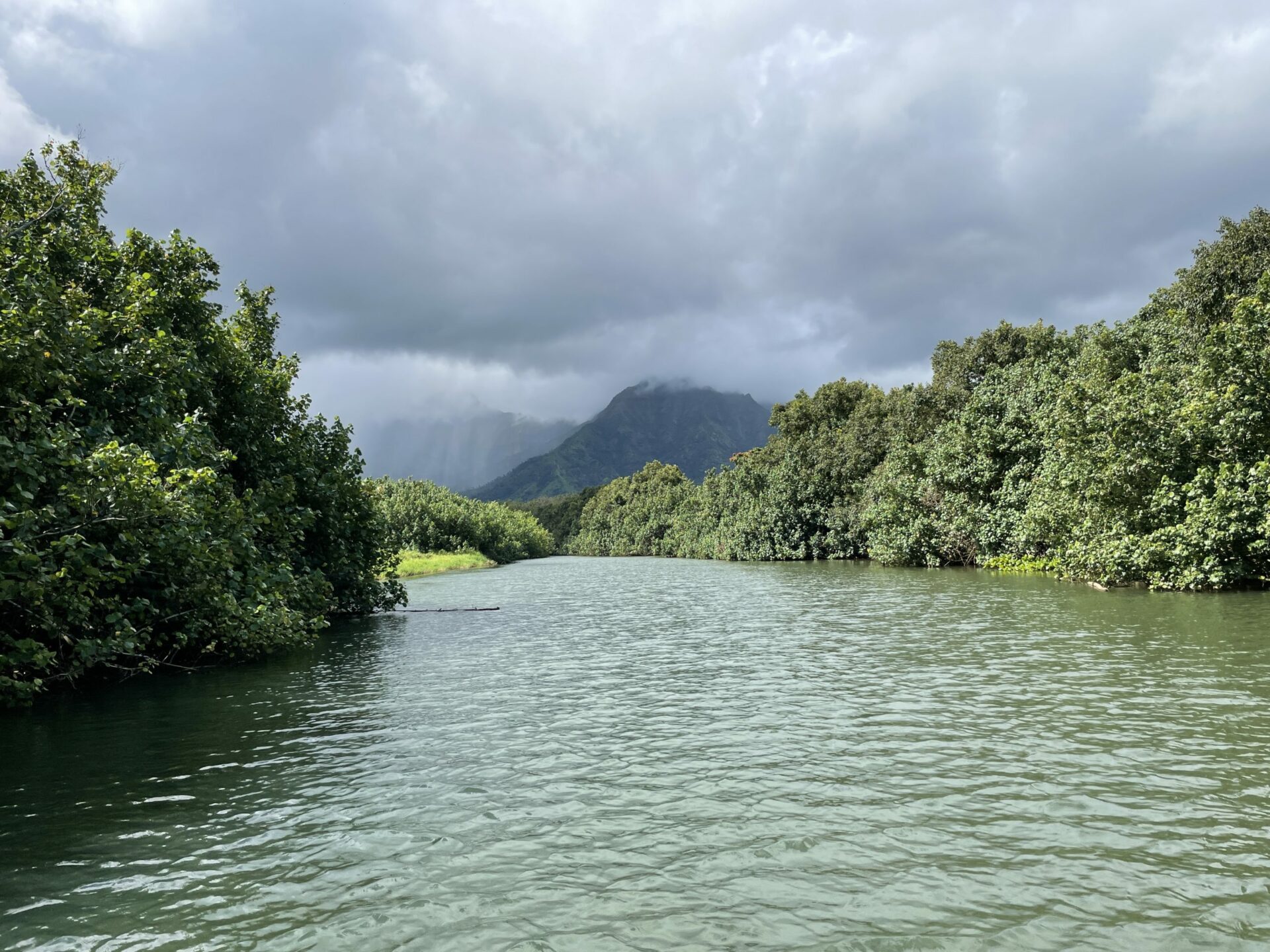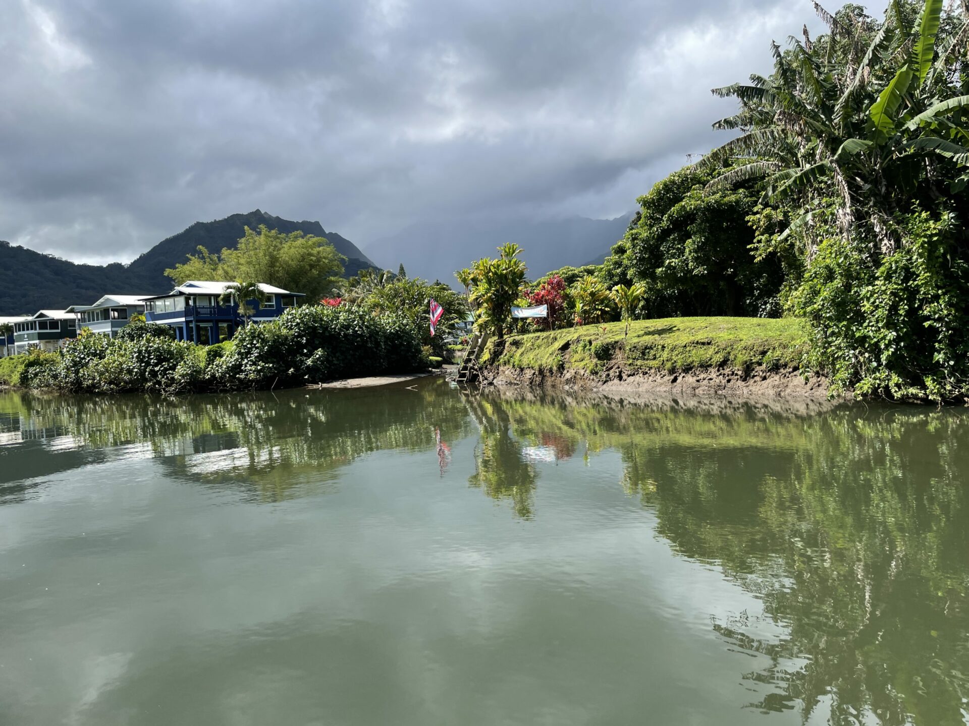 From Kayak Hanalei you can go downstream towards the Hanalei Bay or upstream. Both are wonderful paddles but if we had to choose we’d pick upstream and the featured image of this post is facing upstream towards the mountains.