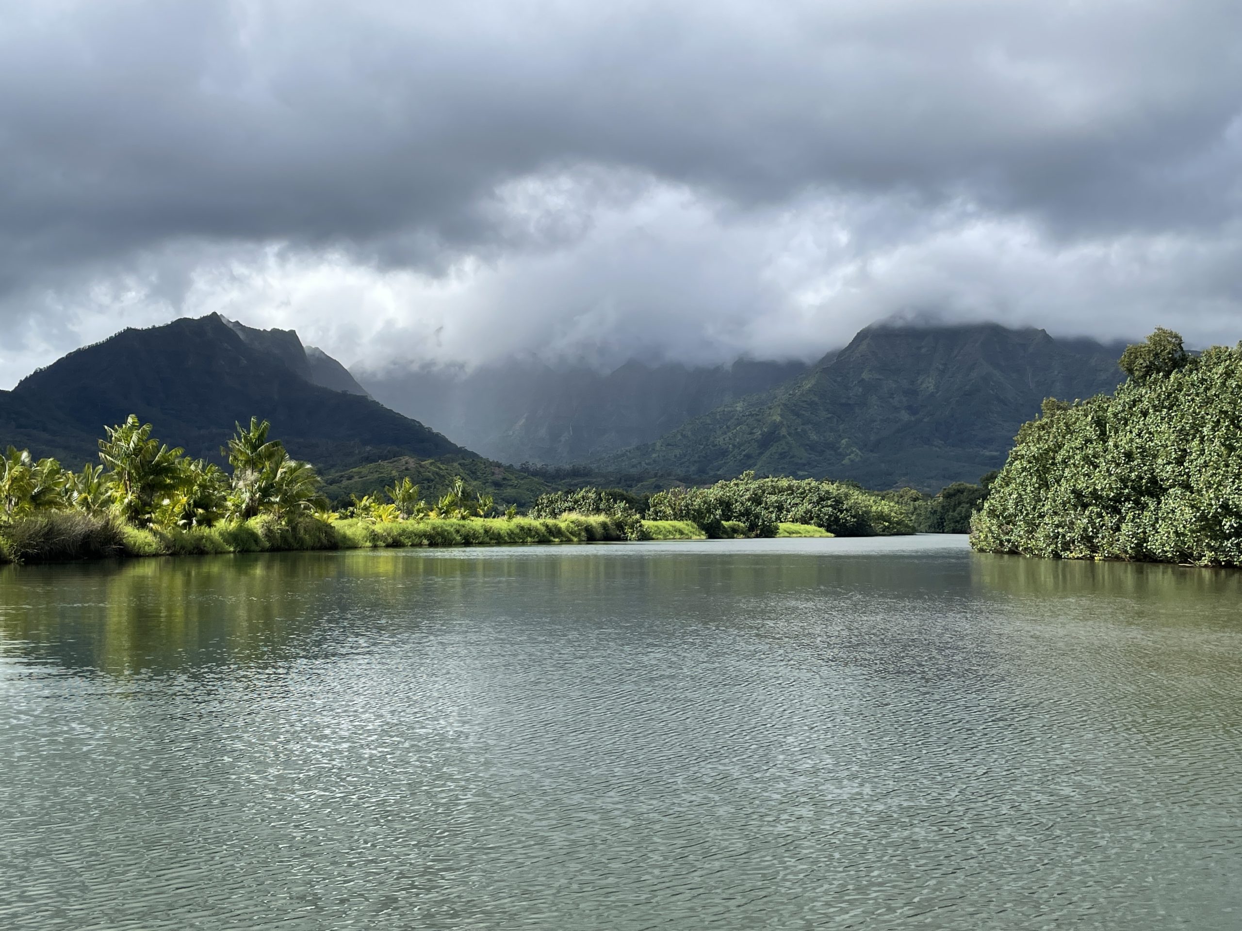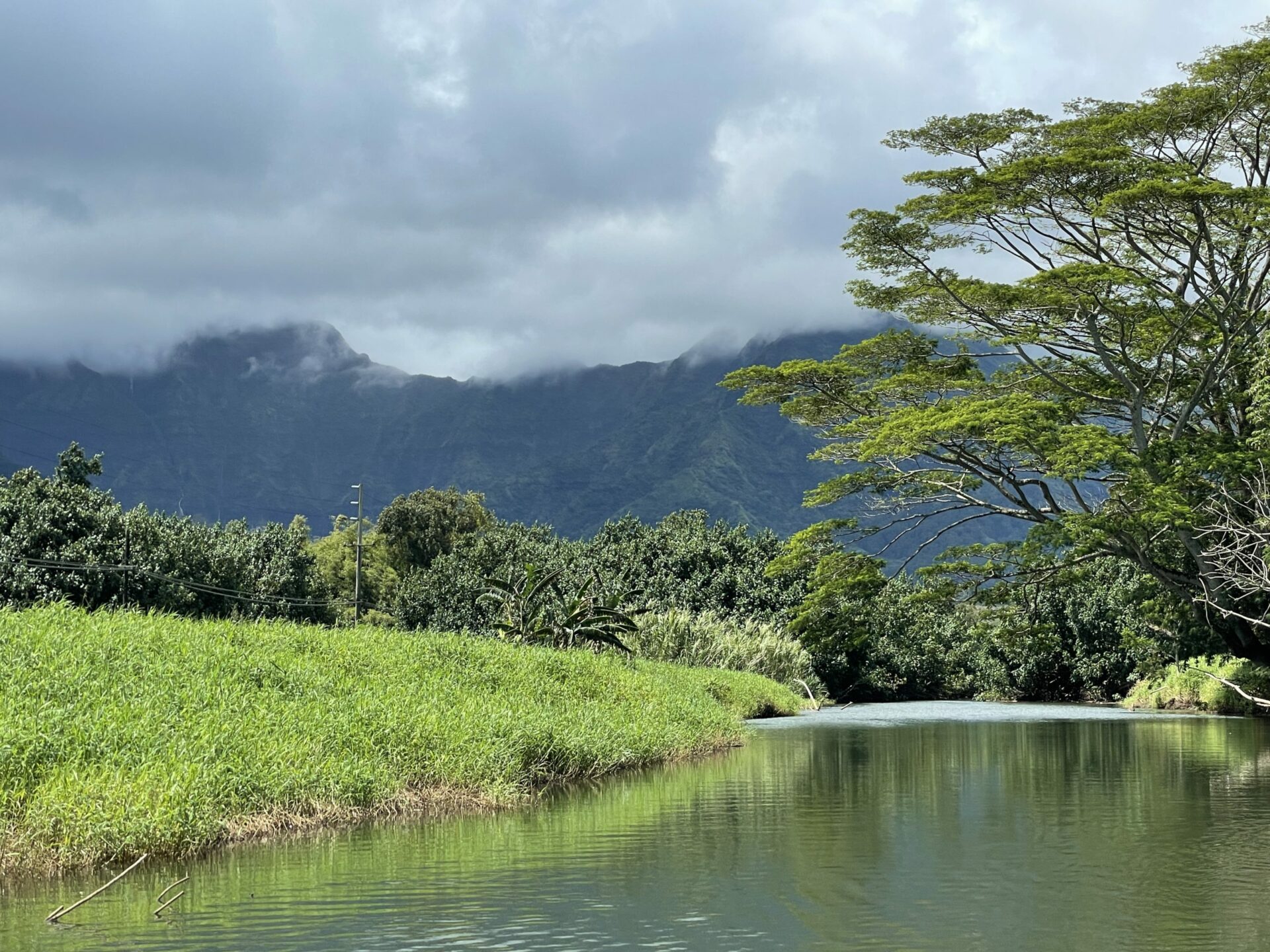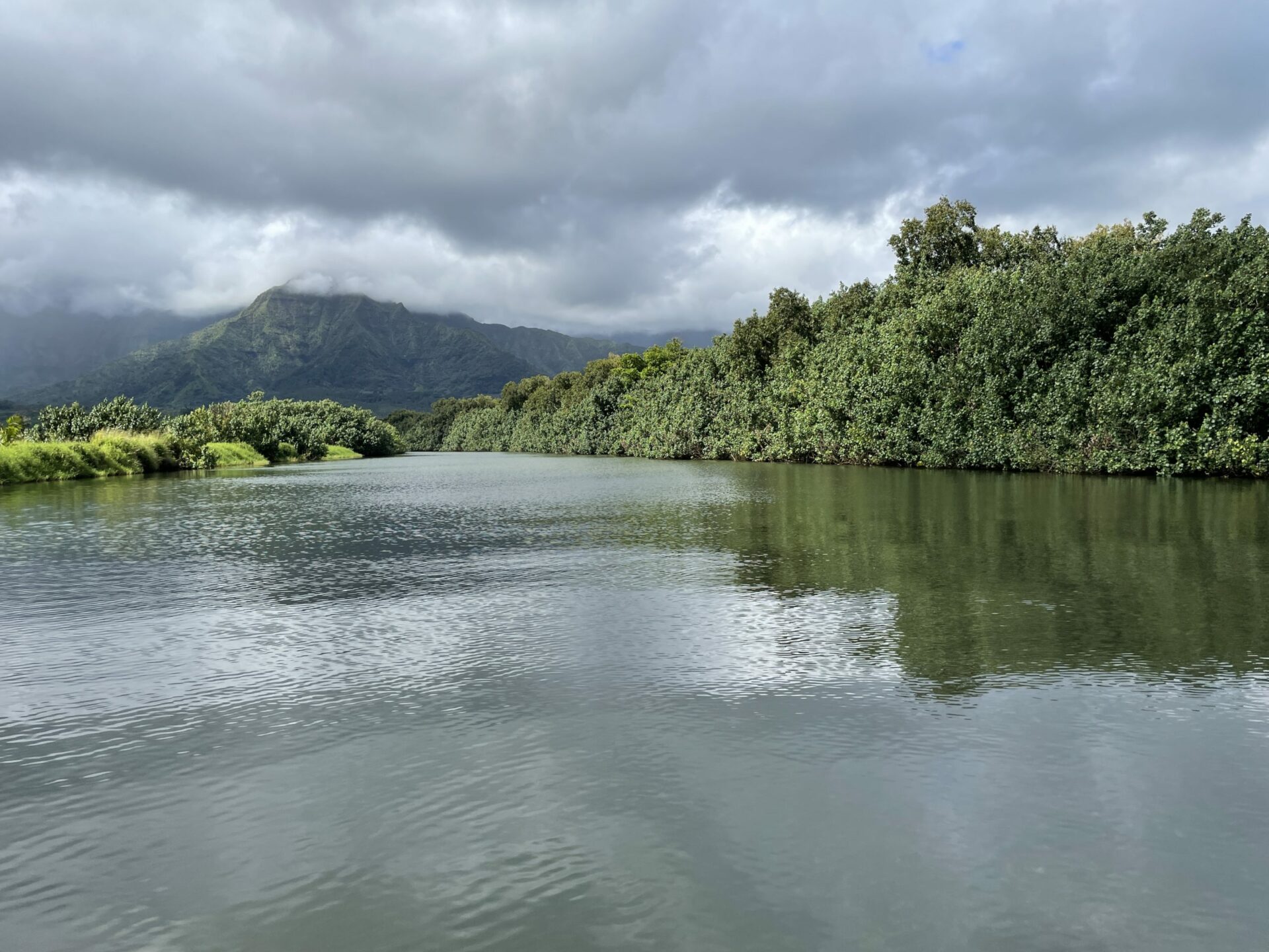 From Kayak Hanalei you can go downstream towards the Hanalei Bay or upstream. Both are wonderful paddles but if we had to choose we’d pick upstream and the featured image of this post is facing upstream towards the mountains.