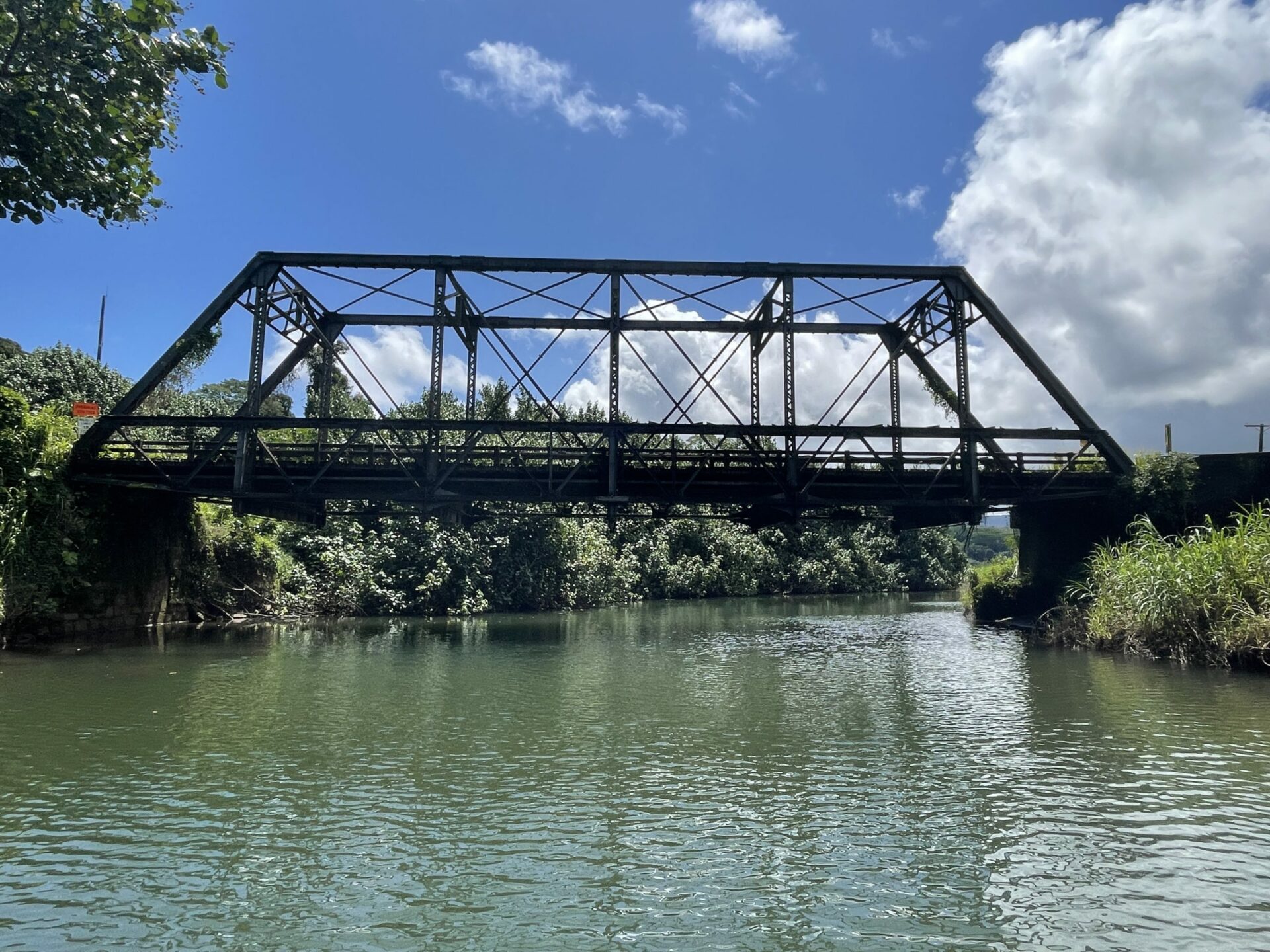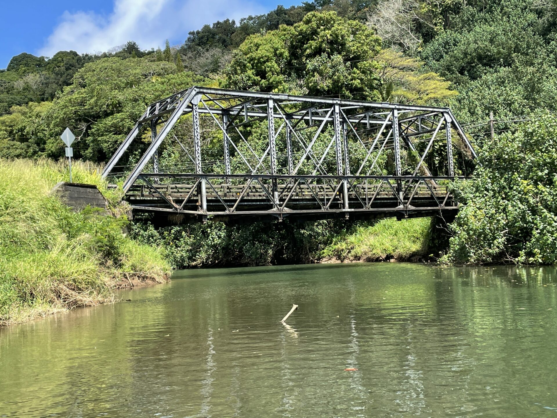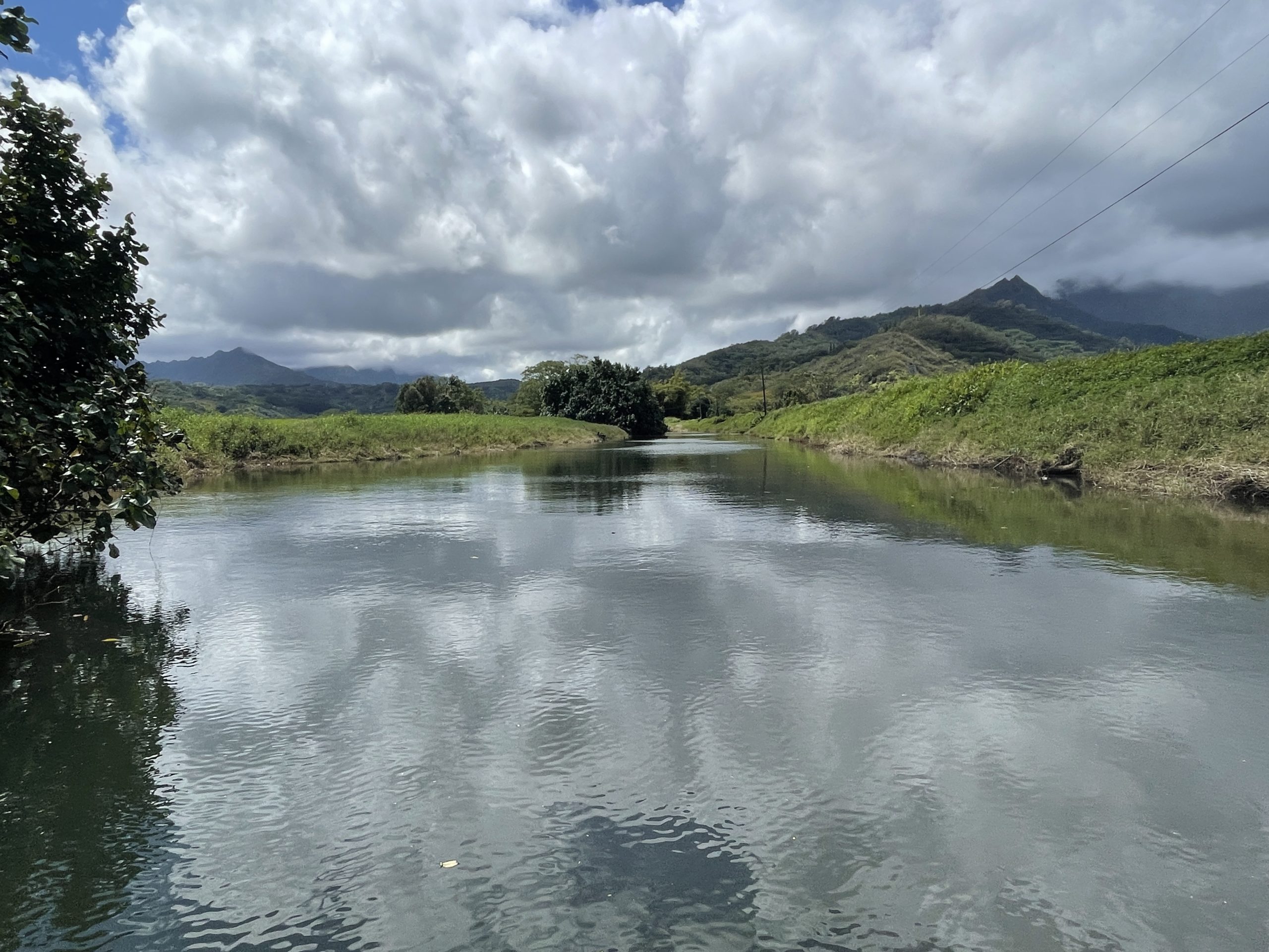 Upstream you go downstream a bit on their man-made channel, then turn right. You travel along the highway that leads to Hanalei, basically backtracking where you came from. At the one-lane bridge you can keep going and you are in the midst of taro farms.