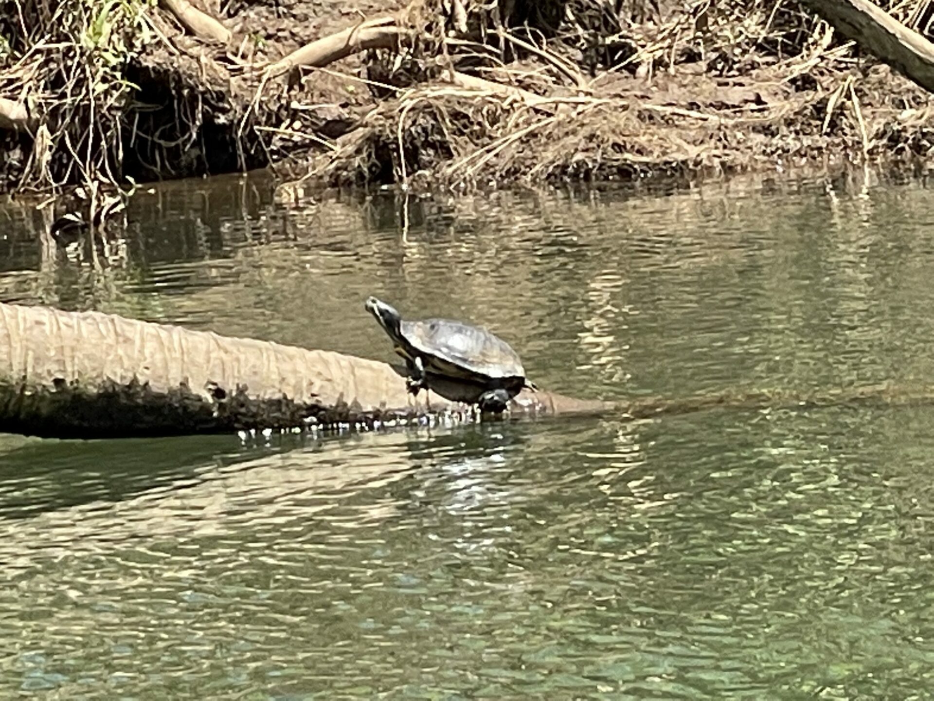 Keep going and the river narrows. This is where it gets fun. The vegetation starts closing in overhead and sometimes you have to move sticks around to keep going. Eventually you have to stop because the river is just a stream. But that’s a great place for lunch.