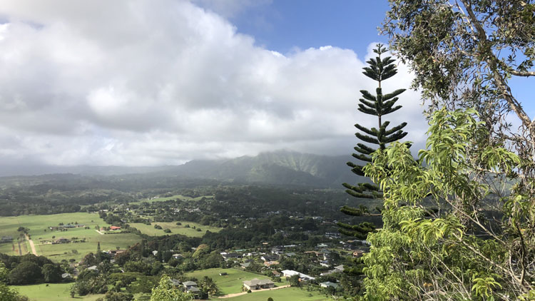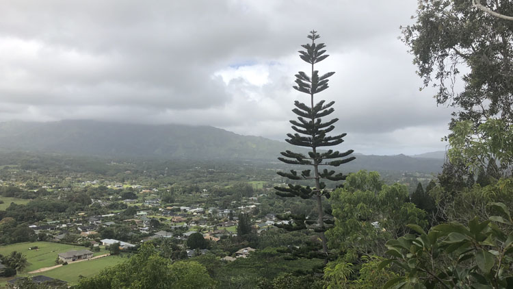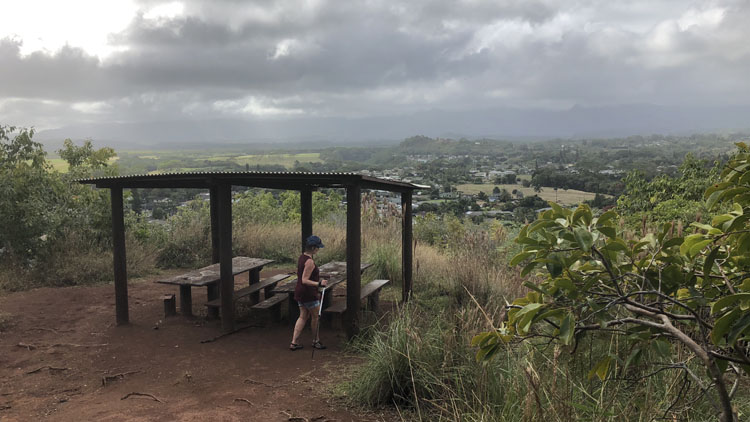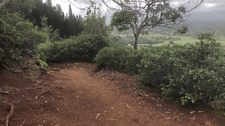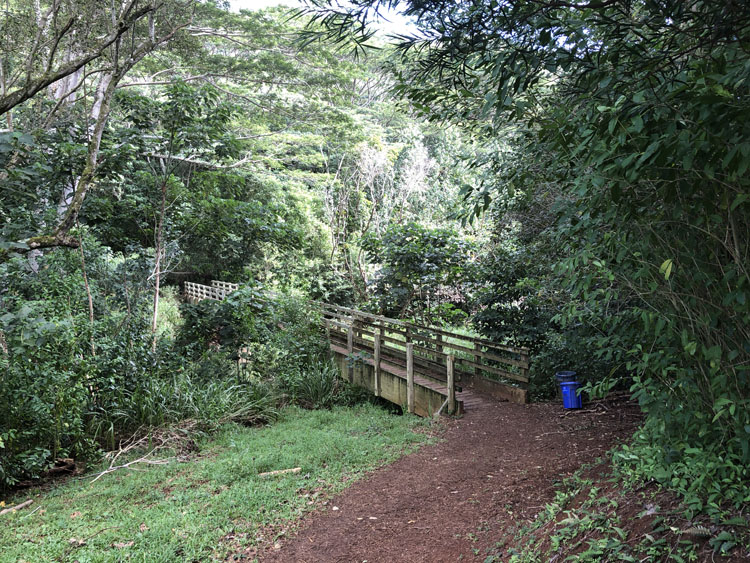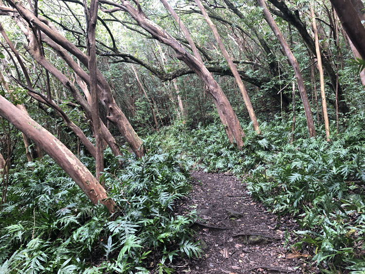 Okay, it’s really the plant canopy – huge bushes grow over the trail most of the way. It’s shady, a plus on a hot day, but not as picturesque as the more famous Nounou Trail.