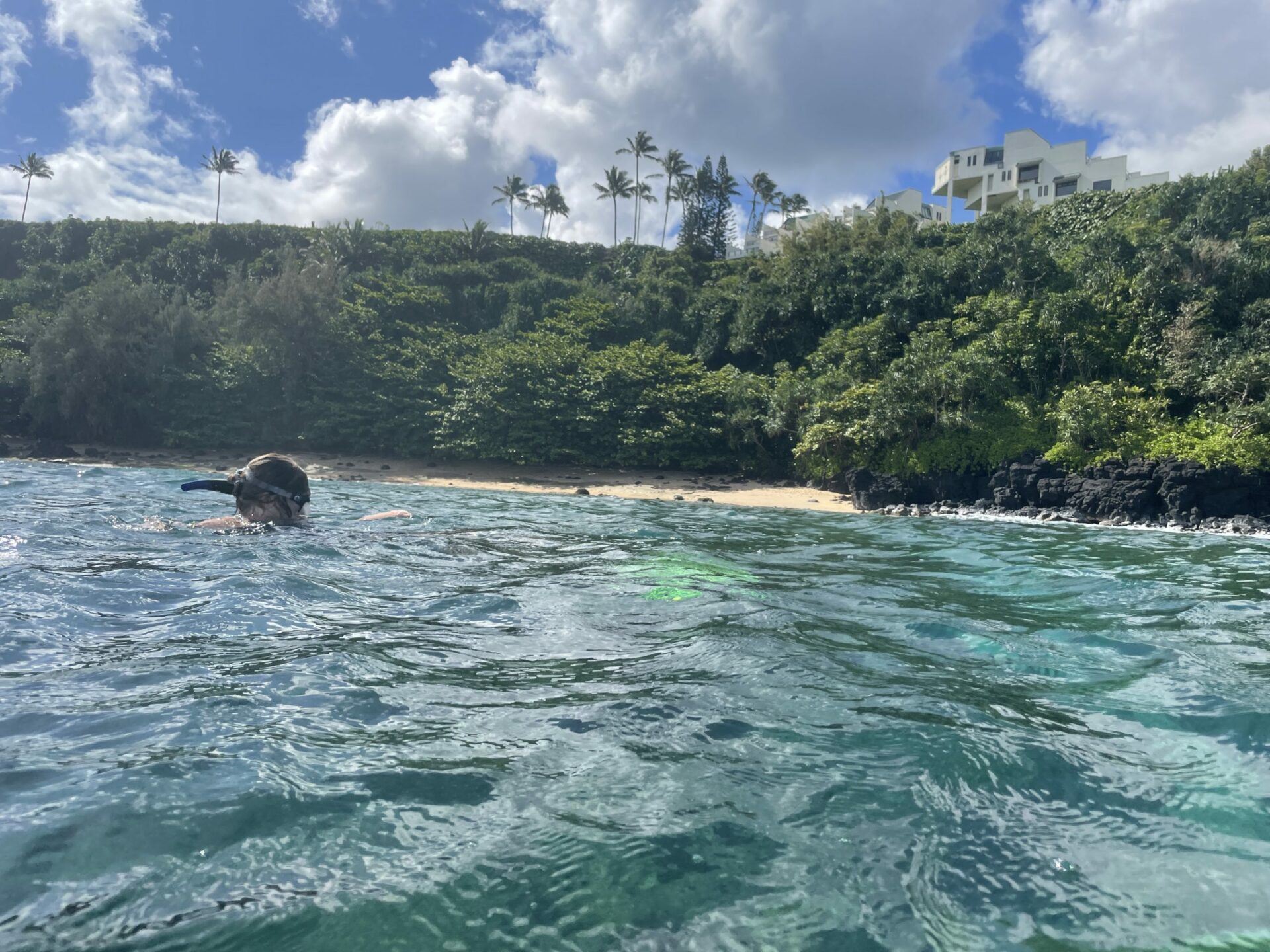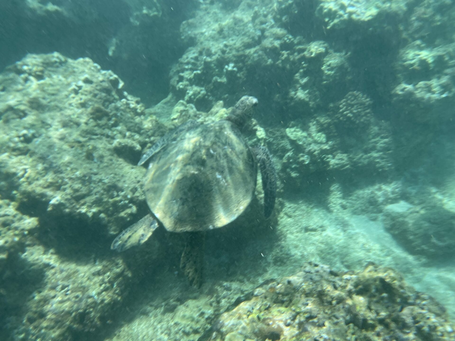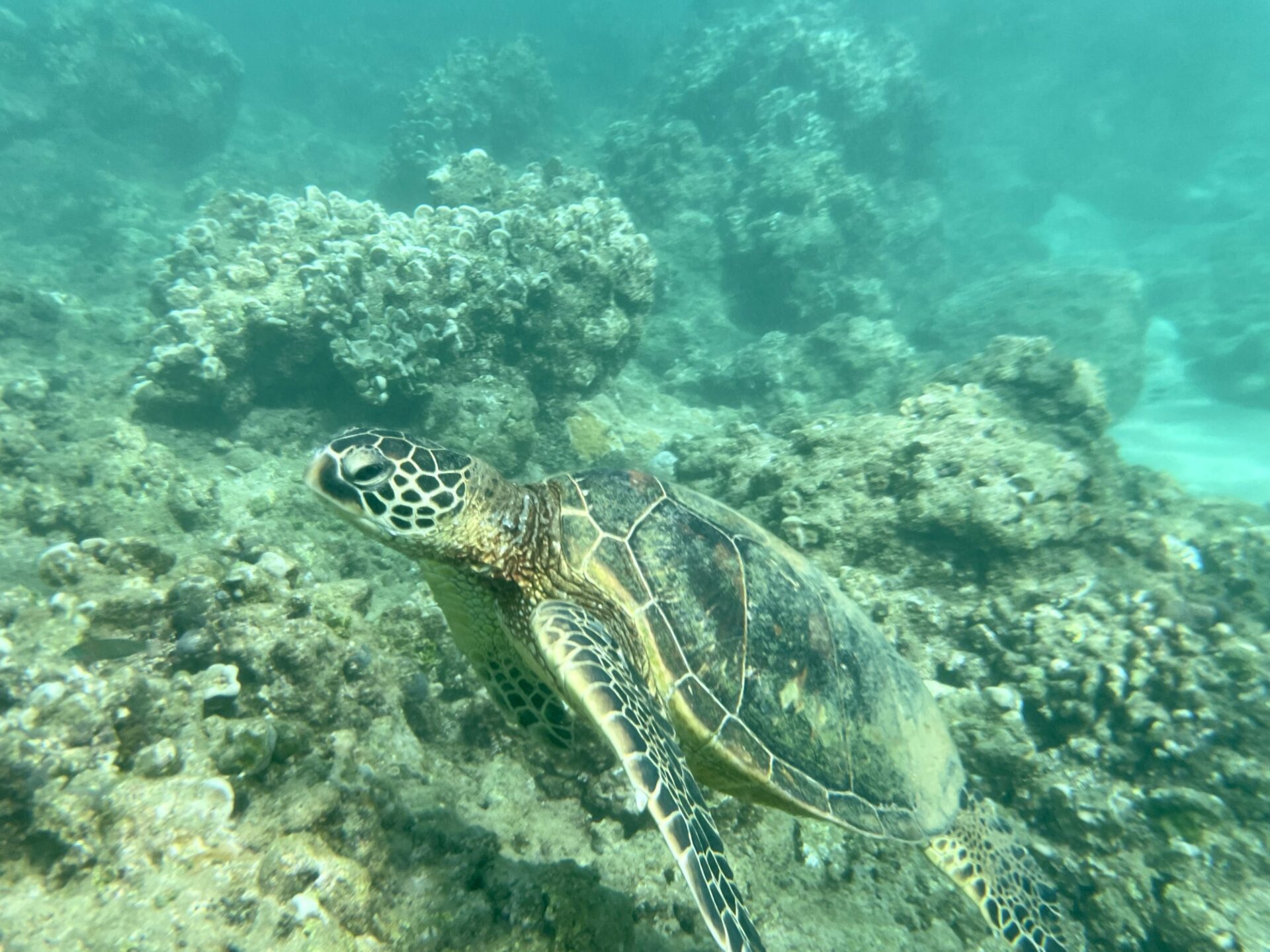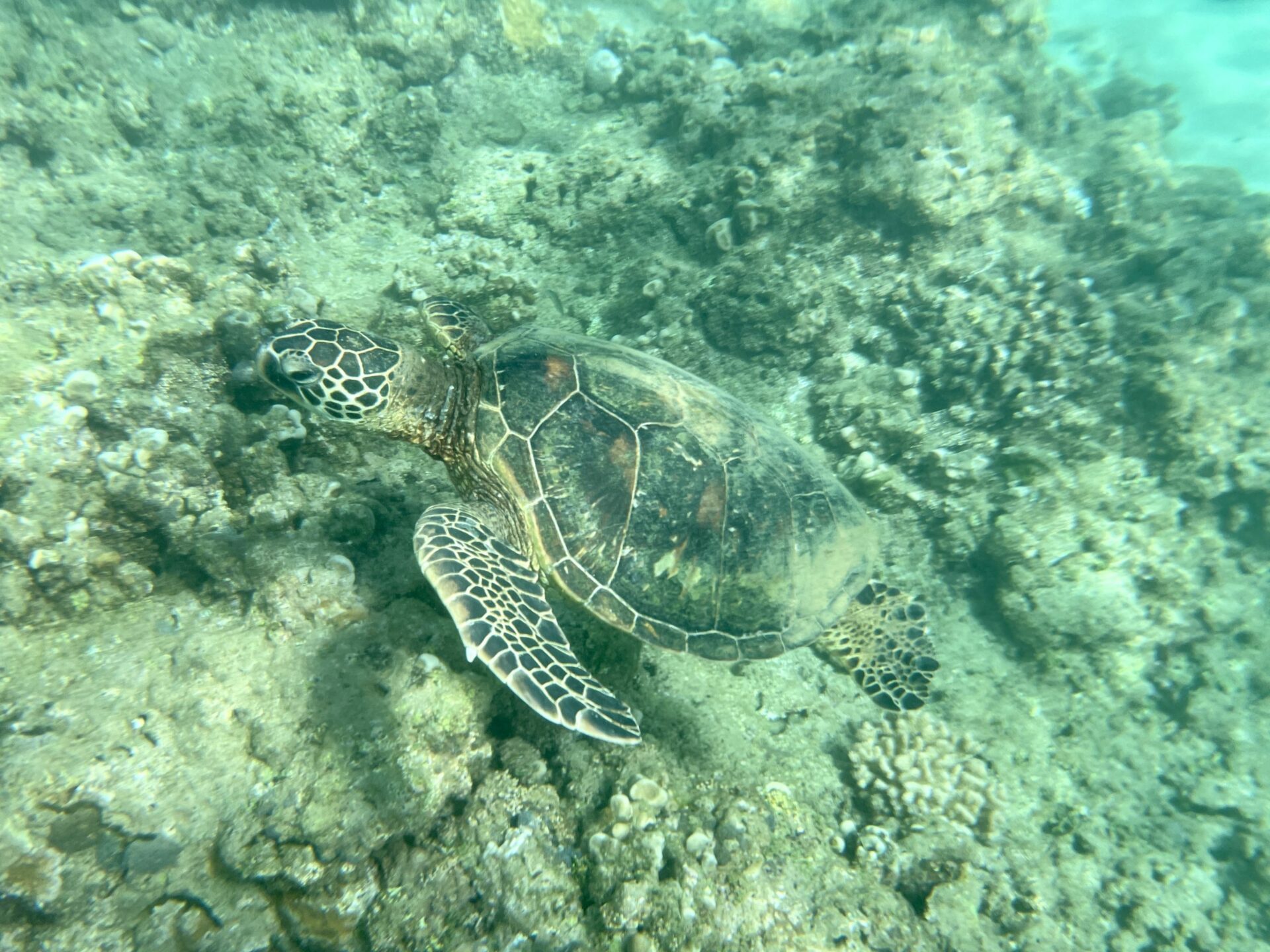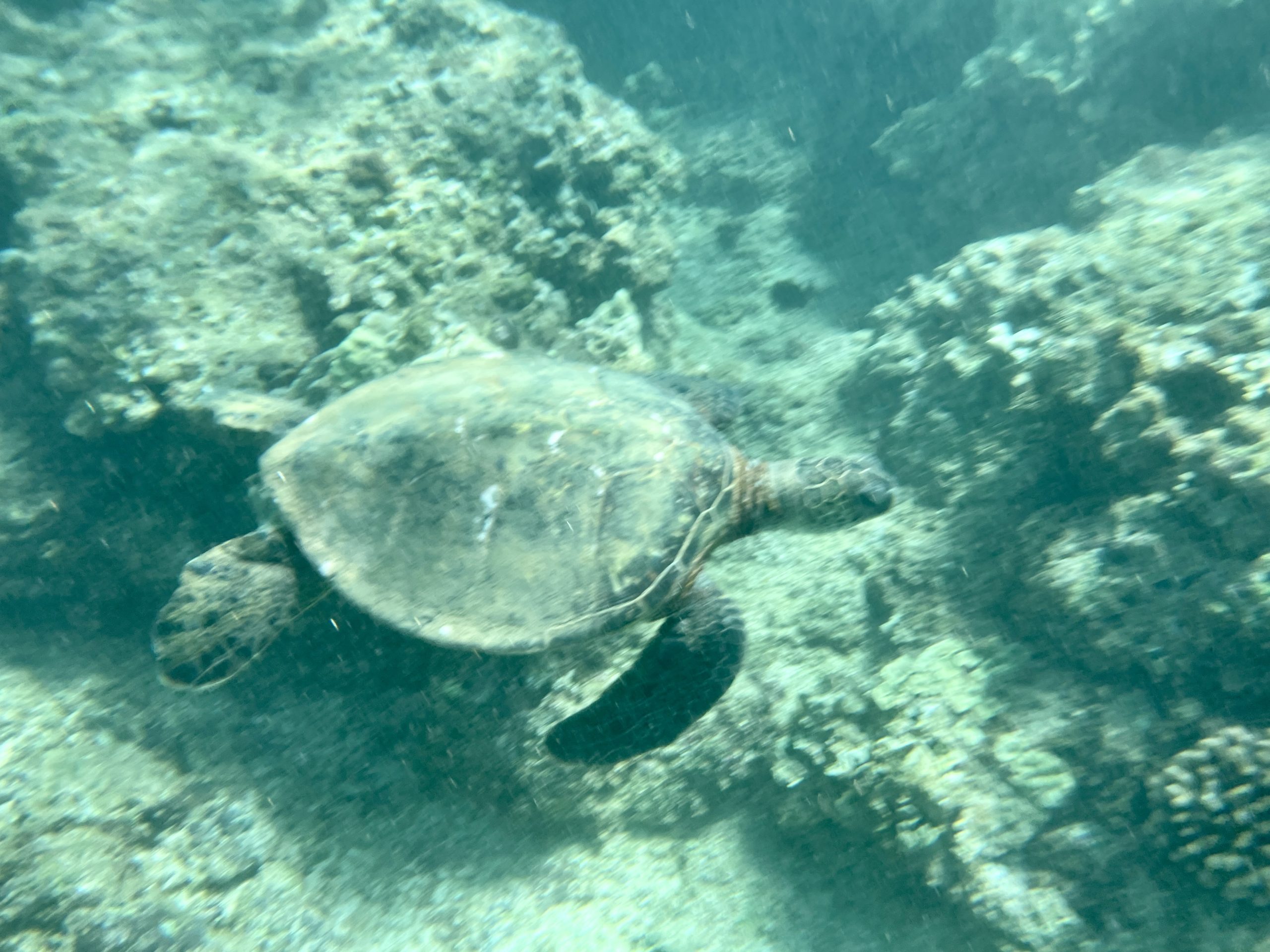 The snorkeling is better on the east side. We regularly see turtles there and you can go out quite a ways in the tunnels or channels between coral and lava. Check out the video below to see just how clear the water is.