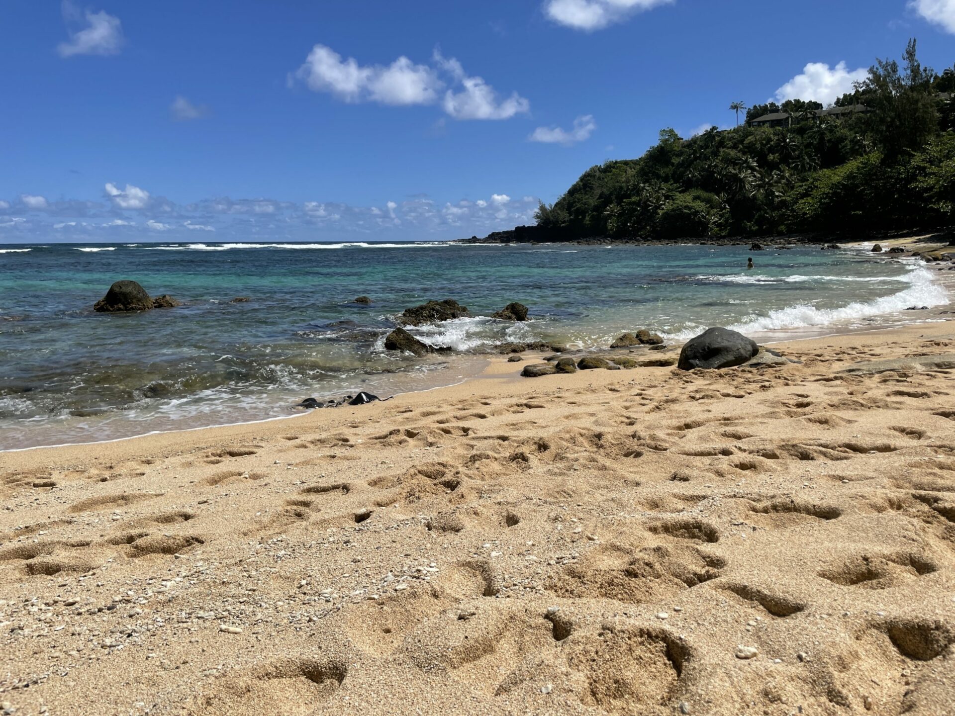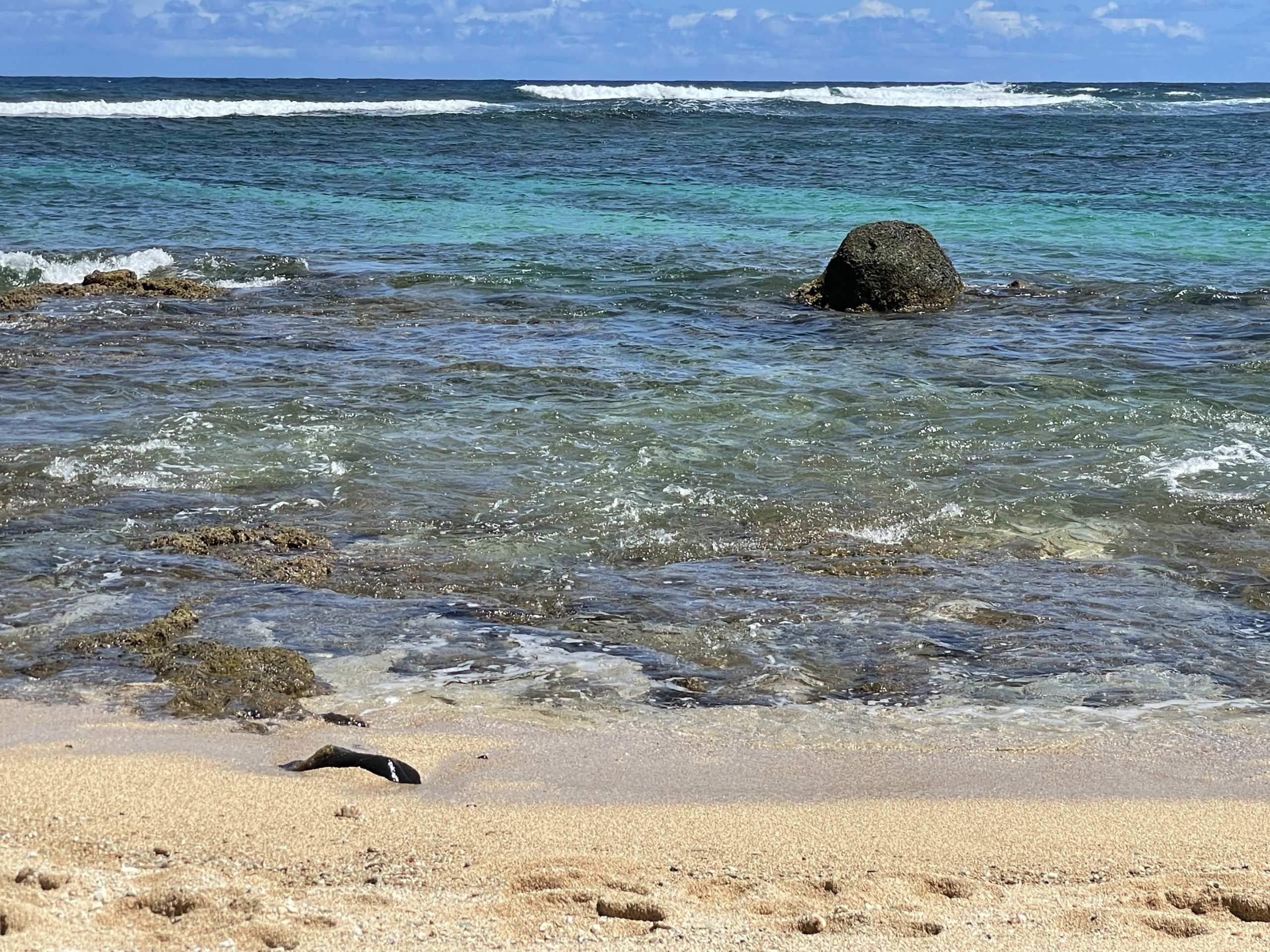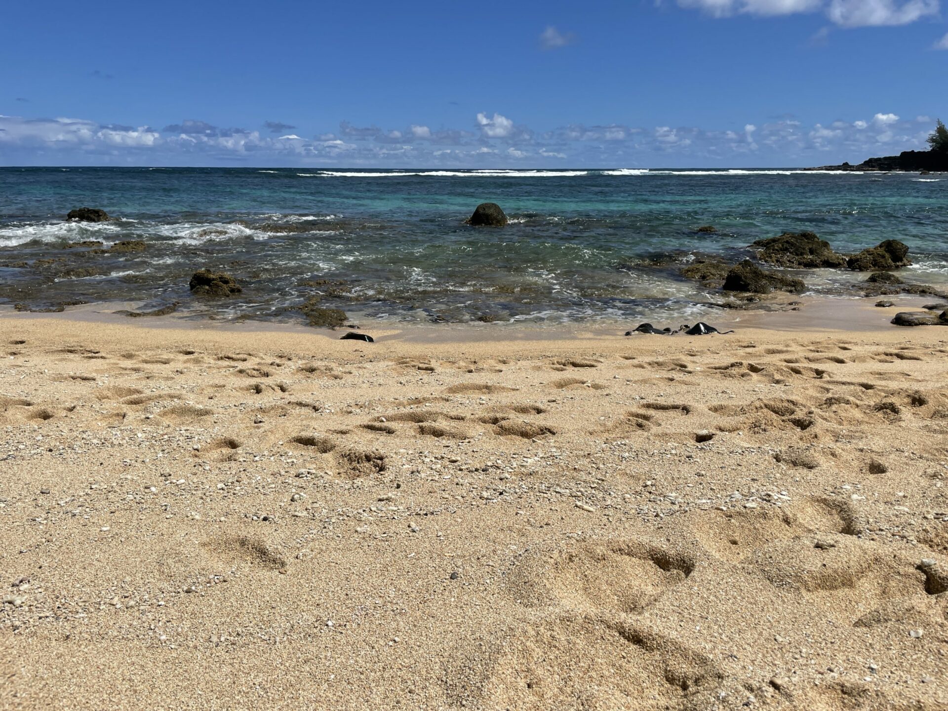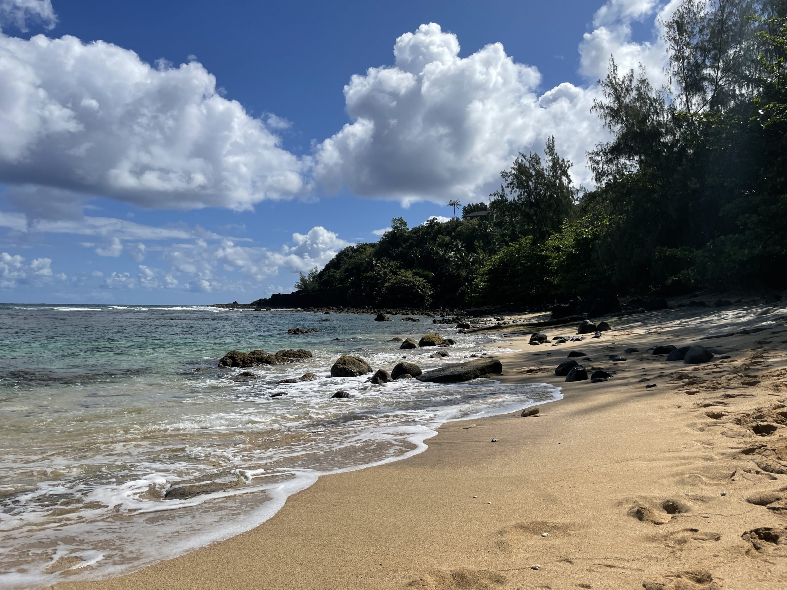 Some of the images in the gallery below were taken at the east side of the beach. You get there if you stay at Pali Ke Kua condos. There is a steep but paved trail down from the first parking lot that leads to a BBQ area and finally down to the beach. If you want to take the risk of being towed, you could park there (I don’t think they really check parking).