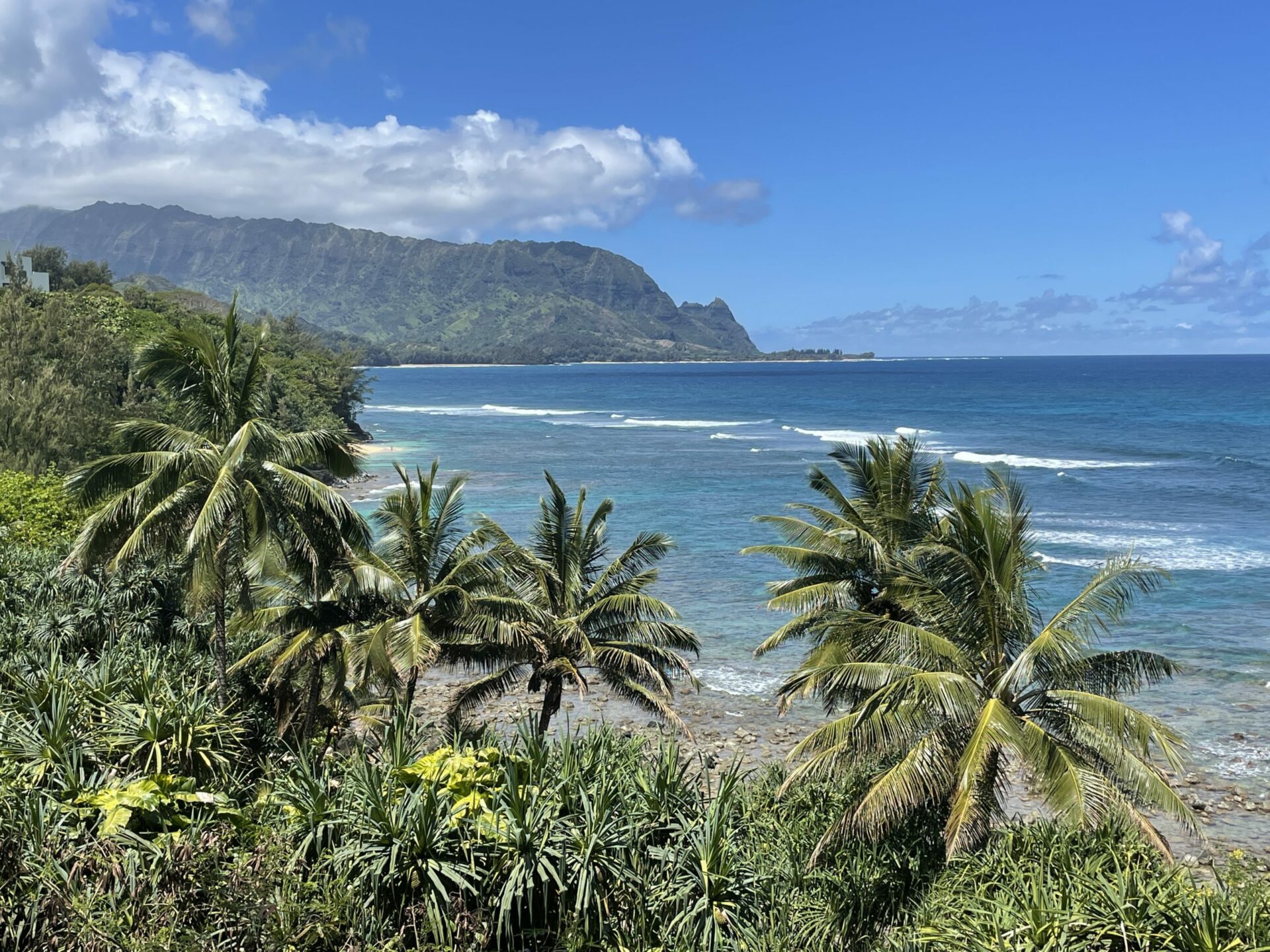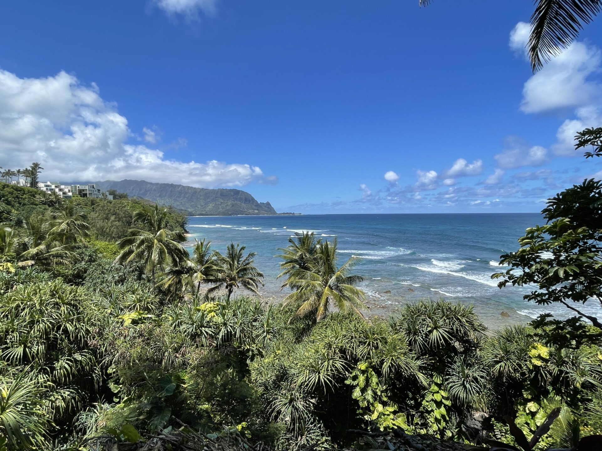 Arrive early if you want to find a parking spot. Look at directions below. You will drive to Princeville and continue almost to the guard shack at the St Regis, at the end of the road. Look to your right and you’ll see a tennis court and a very small parking lot just beyond.